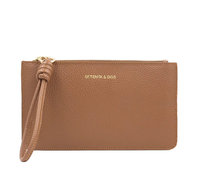 Una cartera perfecta para llevar tus artículos esenciales de uso diario: tarjetas, celular, papeles, efectivo. Se convertirá en tu gran aliada para tus salidas y tus viajes. Llévala con facilidad gracias a su asa con diseño de nudo.