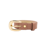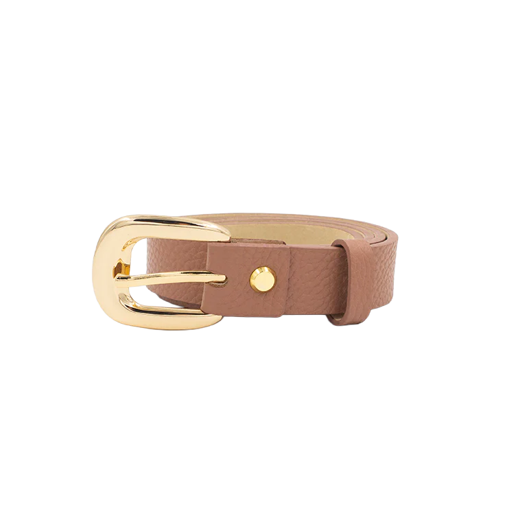 Una correa delgada y delicada es perfecta si quieres tener un accesorio sutil en tus looks. Nuestra correa de 2.5 cm será el toque ideal con su hebilla semi redonda con acabado dorado.